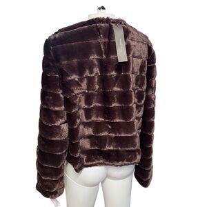 Allegra K NWT Women’s Brown Teddy Jacket Faux Fur Open Front Sz. Medium