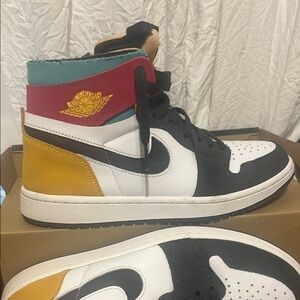 Experience the iconic style of Jordan with these black and white high-top sneakers. Crafted with a sleek design, they feature a classic color-blocking pattern and a comfortable fit. Perfect for adding a touch of sophistication to your casual wardrobe.