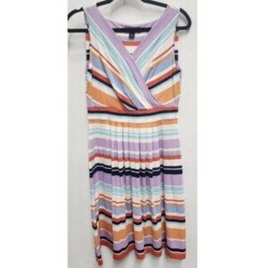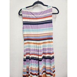 Lands End womens Sleeveless A-Line Dress Small Purple White Striped Casual