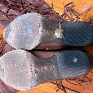 Stylish brown leather boots with fringe detailing. Perfect for a bold fashion statement. Only worn a handful of times still smells of genuine leather bought from free people store. It is a brand they sold called Ash