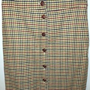 wool-blend houndstooth button front skirt size 6. good condition waist 15 1/2" length 20 3/4"