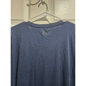This is a pre-owned Under Armour HeatGear T-shirt, size 2XL. The shirt is navy blue with a silver "UNDER ARMOUR" logo across the chest. It features a crew neck and short sleeves. The material appears to be a lightweight, breathable fabric. No stains, rips, or tears!