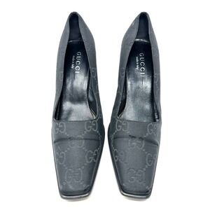 AUTHENTIC Gucci GG Logo Guccissima Supreme Pumps Slip On Squared Toe Black Heels