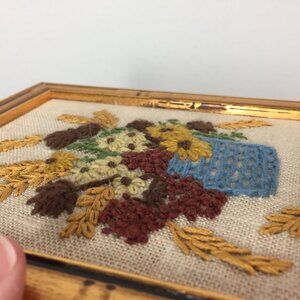 Vintage Crewel Embroidery Picture Wildflower Bouquet Framed