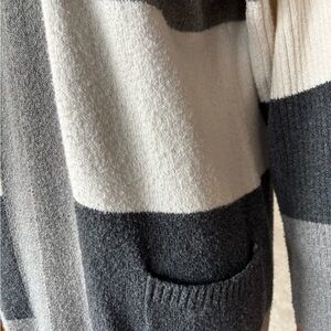 Stay cozy and stylish with this colorblock long cardigan sweater. Featuring a blend of gray, orange, black, and cream, this sweater is perfect for layering. Ideal for any casual outing.