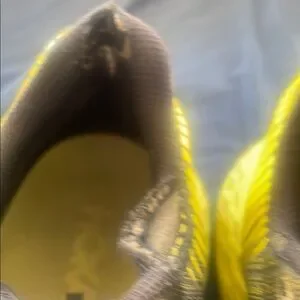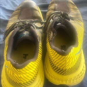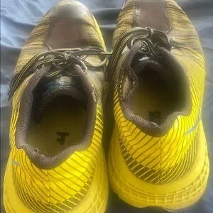 Experience ultimate comfort and style with Hoka men's running shoes. Featuring a striking yellow and black design. Note the wear in the fabric, see pics for detail.