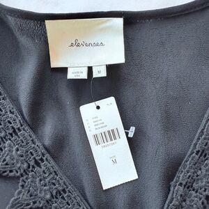NWT Anthropologie Elevenses Lace-Trimmed Romper 3/4 Sleeves V-Neck in Black Sz M
