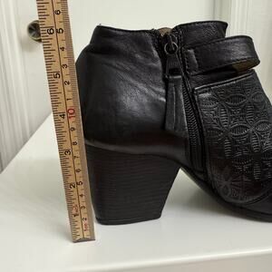 Miz Mooz Dale Mary Jane Heels Ankle Booties Faux Leather Black Embroidered Sz 9