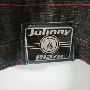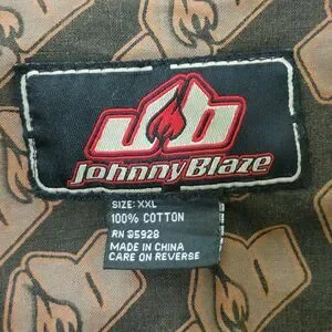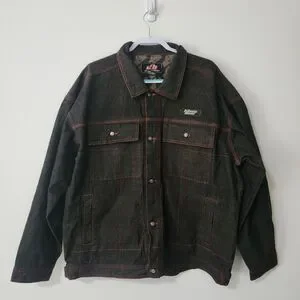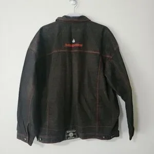 Johnny Blaze Y2K Mens Denim Jacket Brown Red Stitches Cotton Button-Up Logo 2XL