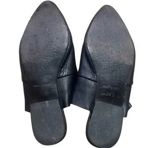 Free People Sienna Leather Ruffle Pointed Toe Flat Mules Black Womens Size 6.5