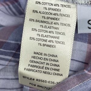 Anthropologie Cloth&Stone Plaid Tie Hem Button Down Shirt Short sleeve waist length blouse in purple/white plaid pattern, spread collar, front pockets. Lightweight and versatile Size: Small