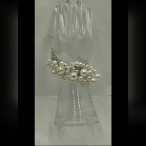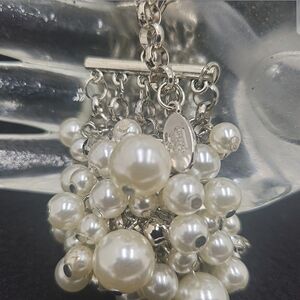Vintage Aura Faux Cluster Pearl Rhinestone Silver Tone Link Bracelet
