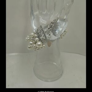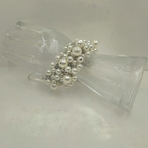 The Vintage Aura Faux Cluster Pearl Rhinestone Silver Tone Link Bracelet is a stunning piece of jewelry that exudes elegance and sophistication. Featuring a cluster setting style, this bracelet is adorned with clear rhinestones set in a silver-toned base metal. The intricate beadwork and vintage design make it a perfect accessory for women who appreciate classic and timeless styles. The combination of faux pearls and rhinestones adds a touch of glamour to any outfit, making it a versatile piece that can be worn for both casual and formal occasions.
