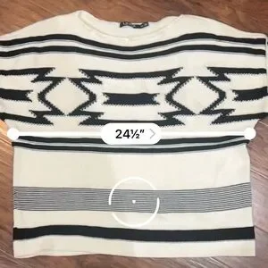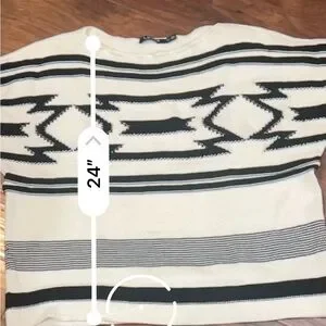 Stylish sweater featuring a bold black and white pattern. Perfect for a modern, casual look and layering.