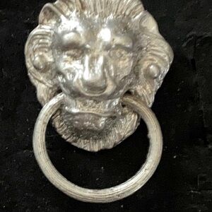 Elegant 1 1/2” silver tone lion head door knocker Brooch or Pin. Perfect for adding a touch of sophistication to your outfit.