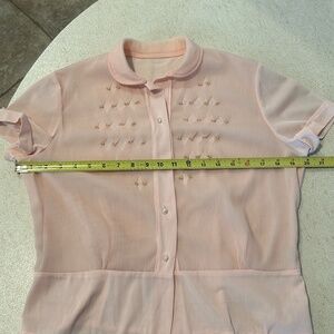 1950’s Vintage Blouse Feminine Pink Faux Pearls Pleated Size Large