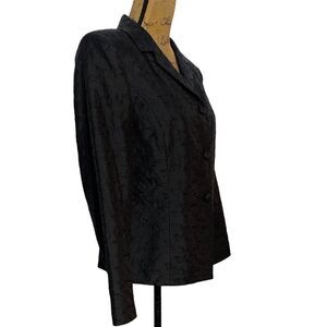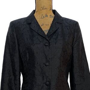 Talbots Blazer 8 Black Pure Silk Embroider Leaf Vine Button Down Jacket Career