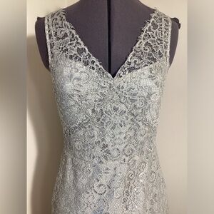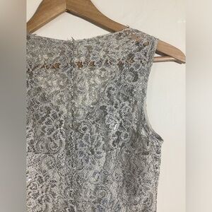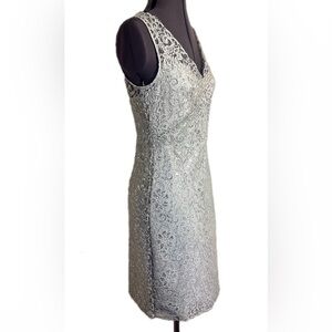 BCBGMAXAZRIA Silver Metallic Lace Cocktail Dress