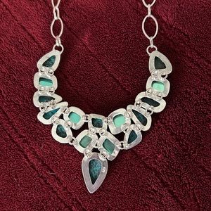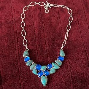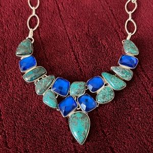 Sterling silver hand made turquoise gemstone bib necklace