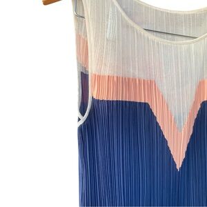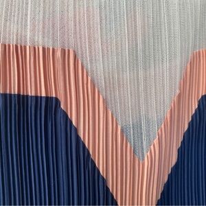 Features tulle detail throughout for a contrasting color block look; accordion pleating; 1.5” elastic waistband. Skirt has short lining underneath. 100% Polyester. Can be machine washed and dried.