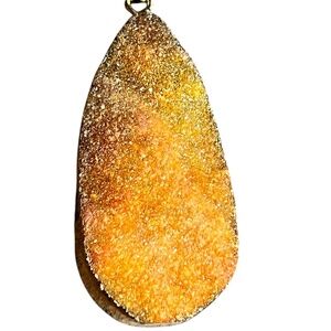 Druzy Agatae Pendant Peach 2" Long With Golden Edge and Bail Used
