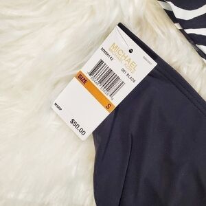 New with tags. 2 Piece swim set. this tankini/ bandini has a MK Logo ring hardware in front for the 2 halt straps to tie at the back of the neck. There's underwire for support in the top. Removable soft cups. Lining in black for the bottom and white for the top. Brand: Michael - Michael Kors Size: XS Color: Black and White Condition: New, never used with tags. Material: 85% Nylon, 15% Spandex