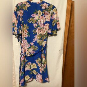 Royal blue with floral print wrap dress with tie at the waist