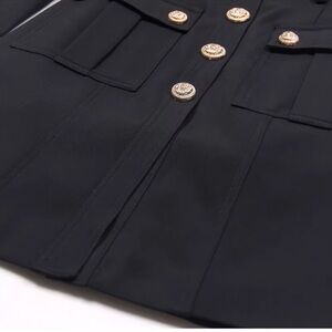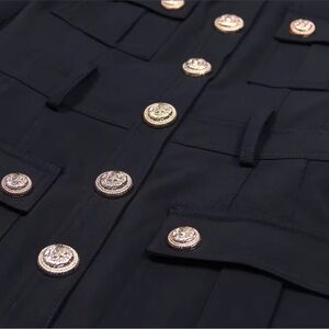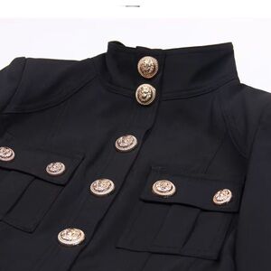 Elevate your style with this chic black military-style coat. Perfect for any occasion, this coat combines elegance with functionality. A must-have addition to your wardrobe. Size medium: Bust:34.65". Waist:28.35". Hip:37.80". Shoulder:14.96". Length:34.65". Sleeve Length:23.23"