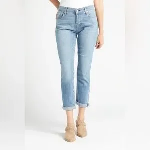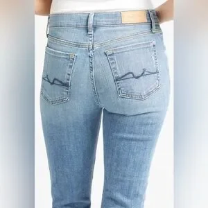 Excellent condition- The Josefina jean is easy to wear and easy to love thanks to a flattering relaxed fit and authentic light blue wash. Cut from comfort-stretch denim, these 7 For All Mankind jeans feature a classic mid rise and straight leg silhouette.