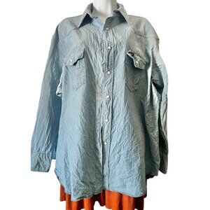 Wrangler Mens Denim Western Snap Shirt Blue L