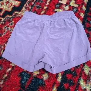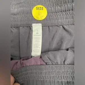 These Lululemon shorts in size 6, featuring a 3” inseam and a blend of 86% recycled polyester and 14% elastane, offering a flexible yet durable fit. The purple color adds a stylish touch, while the gartered waistband with a drawstring ensures a secure and adjustable fit during all activities. A convenient back pocket provides storage for small essentials, making these shorts perfect for workouts, runs, or casual wear.