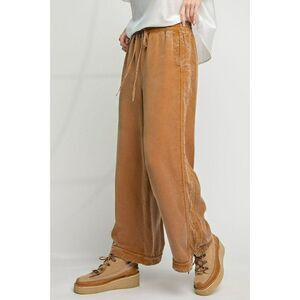 Easel Comfy + Cozy Mineral Washed Soft Twill Wide Leg Pants in Camel EB41434