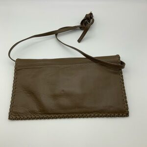 Sondra Roberts purse flat envelope like with thin strap brown leather braided trim