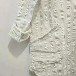 NWT Dylan sun Bleached Stripe Tunic Size Small. New with tags. There is a random black stitch running through the collar, thinking that this was done for packaging at the time of original shipment? The stitch can easily be cut and removed. Otherwise, no flaws.