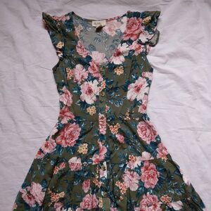 Blu Dahlia Button Down Dress Floral Flutter Sleeve Cottagecore Boho Womens XS.
