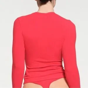 SKIMS Cotton Stretch Jersey Long Sleeve Red Shirt Size XL