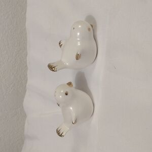 White porcelain salt and pepper shaker birds with gold beak & wing tips set of 2