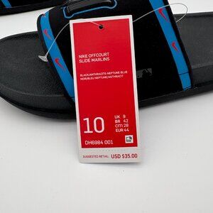 NWT Men's Size 10 Nike Off Court Miami Marlins Slides.Walk around comfortably in Miami Marlins footwear with these Off-Court Slide sandals from Nike. They feature printed Miami Marlins graphics on the soft strap. The upper binding will also provide a cushioned feel for additional comfort.