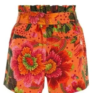 Bright and colorful shorts with a floral pattern. Features a tie waist, removable belt with elastic in the back for a stylish look.