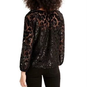 A party ready popover top in leopard burnout velvet is the easiest piece to accessorize up or down