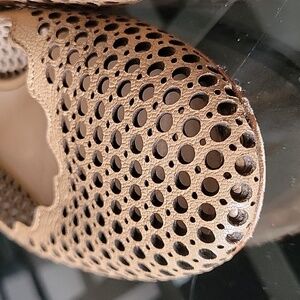 Elegant tan ballet flats with a stylish perforated design. Perfect for casual and formal occasions.