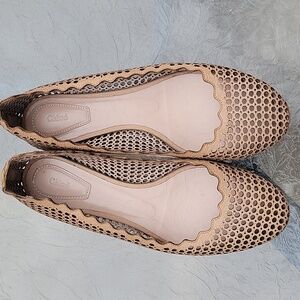 Chloé Lauren Perforated Tan Lasercut Braided Leather Ballet Flats Made Italy 6.5