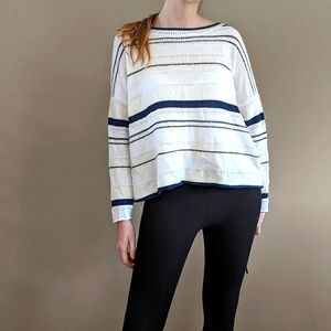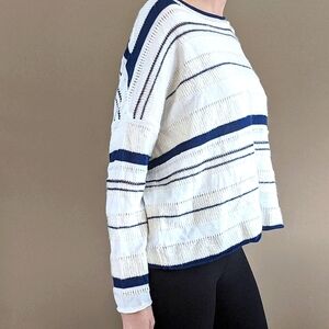 Lou & Grey Striped Sweater Size M, Navy Cream and White