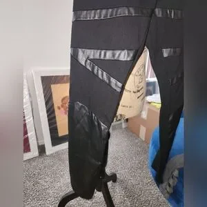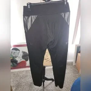Stylish black leggings with faux leather panels. Perfect for a chic look.