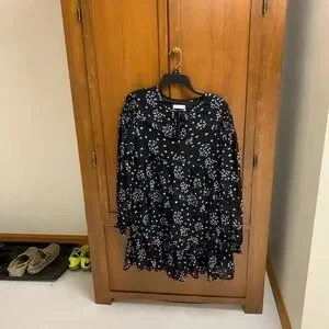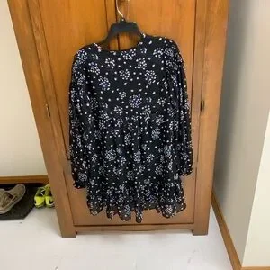 Romantic urban outfitters sheer lined poly dress elastic cuff sleeve