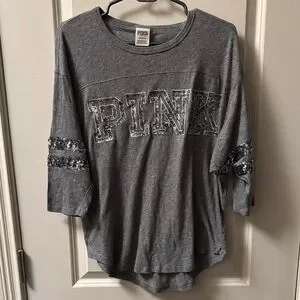 PINK Victoria's Secret Gray Sequin Tee