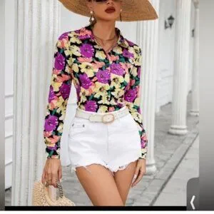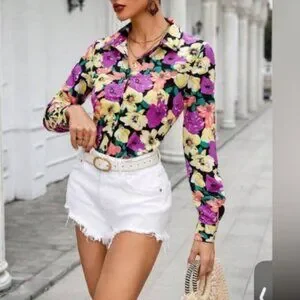 VCAY Full Floral Printed Long Sleeve Women'S Shirt size S new without tag