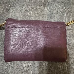 Elegant purple Micheal Kore leather bag with a stylish chain strap. Perfect for any occasion.