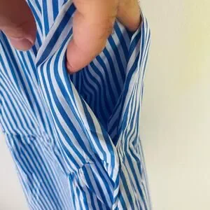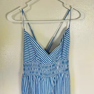 The Madewell Empire Waist Tiered Striped Cross Back Maxi Dress offers a perfect combination of effortless style and relaxed elegance. Designed with a flattering empire waist and tiered detailing, this dress features a striking striped pattern in blue and white for a timeless, laid-back look. The cross-back design adds a touch of chic sophistication, while the relaxed fit makes it comfortable for all-day wear. Ideal for warm-weather days or casual outings, this dress embodies a bohemian, free-spirited vibe with a modern twist. Its versatile style is perfect for any occasion, bringing together vintage-inspired charm with contemporary fashion.