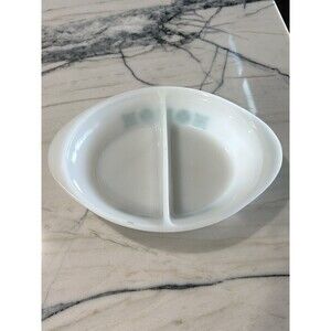 Vintage GLASBAKE Turquoise/teal Snowflake Floral design Divided Casserole Dish